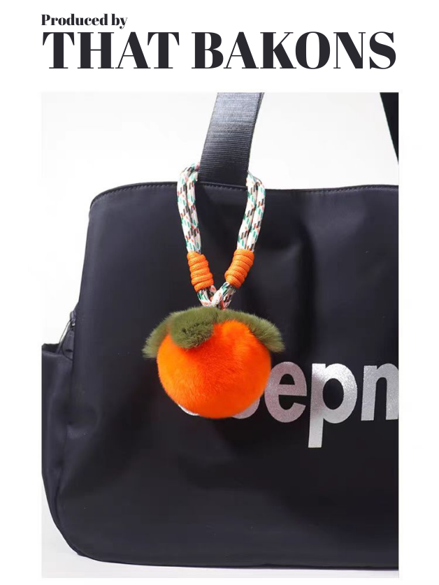 • Вдъхновено от плода кашу, тази плюшена амулет има кръгло оранжево тяло с меки зелени листни детайли, създавайки ярък и игрив вид, който се откроява.